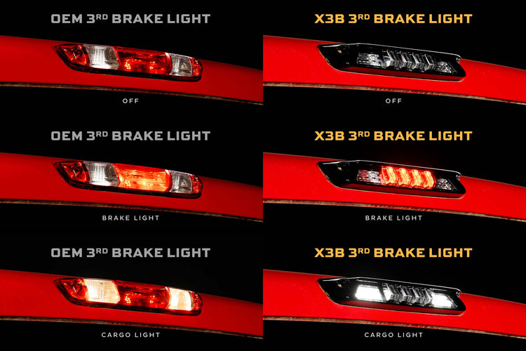 Easy Install: The X3B re-uses all the original mounting points, fits like the factory brake light, and will plug into the stock wire harness. There are no modifications required for the installation, which takes just a few minutes.