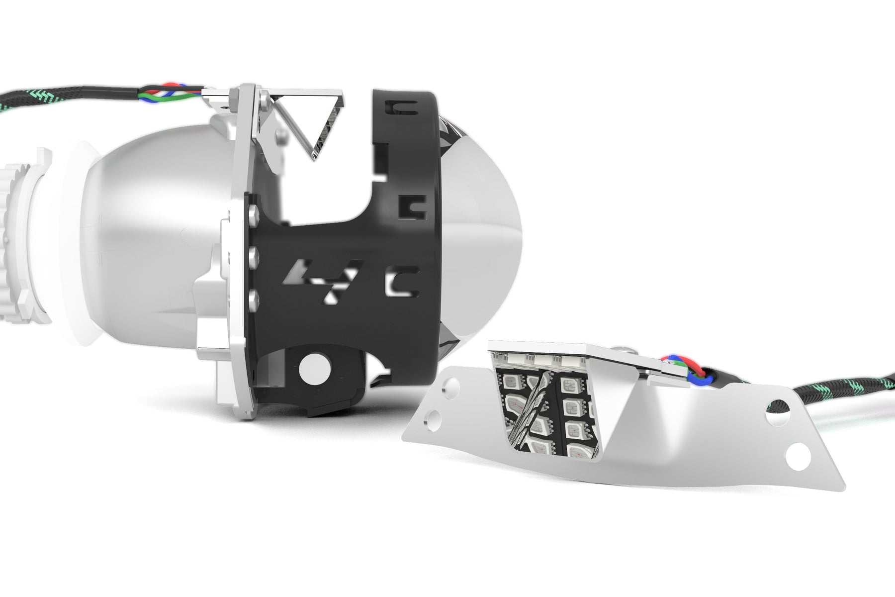 PLUG N PLAY:Â Even older systems from LED Concepts required complicated "DIY" wiring from the user's side, but all Prism LED setups are 100% Plug n Play. There is no wire stripping, cutting, or splicing involved. All wiring is insulated by rubber tubing then protected with TechFlex mesh for an OEM-like appearance, durability, and abrasion resistance. The LED drivers of these trick Demon Eyes are housed inside an aluminum housing that's been anodized with an attractive piano black finish and laser engraved with the Profile Prism graphics. Make sure your setup looks good inside and out!