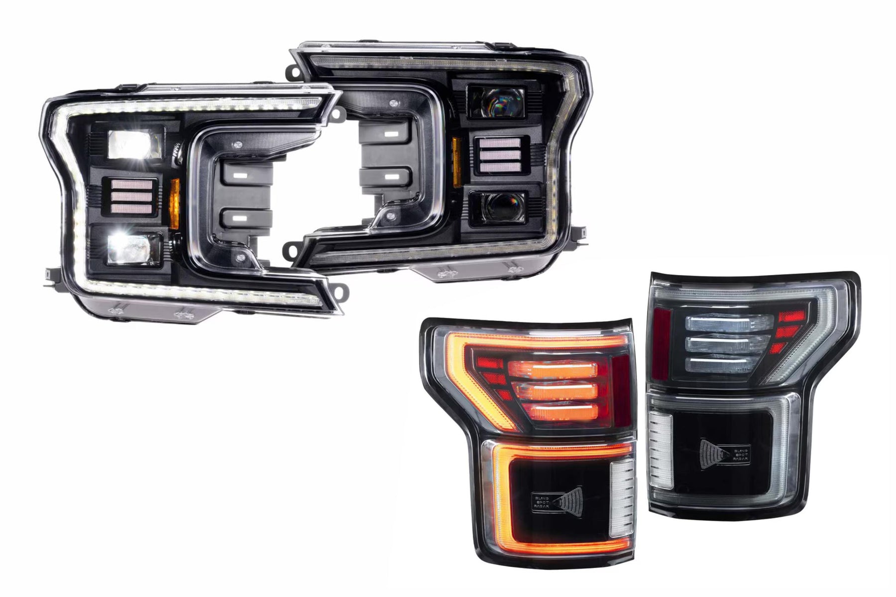 Headlights: BANG FOR THE BUCK: When they came out in late 2018, The XB LED headlights from Morimoto set the bar higher than everything else in the aftermarket, and they're still the benchmark by a longshot to this day. But for many enthusiasts looking for the best, the XB's were simply too expensive. With the introduction of the new Hybrid version, there is finally an XB that everybody can afford. Using a combination of both LED & Incandescent bulbs (thus, Hybrid) these offer much of the same amazing features that the originals do for those who want to be XB-ballers on a budget. QUALITY, INSIDE AND OUT: Thanks to sharing many of the same core components developed for the top of the line model, the new Hybrid series headlights from Morimoto are hardly a compromise. They use the same OEM-grade housing. The same optics for the DRL. They offer the same five-year warranty too. The fit and finish on the Morimoto Ford F150 LED headlights is far superior than anything else out there in this price range, guaranteed. PERFORMANCE: We've always been blown away by the fact that the other brands don't even consider how well their headlights perform on the road at night. The XB Hybrid headlights have a powerful, wide, and bright LED low beam projector, and a dedicated LED high beam projector too. Their optics were specially developed just for use the hybrid lineup to produce an amazing beam pattern despite the affordable price point. These are much more than an aesthetic upgrade, they will illuminate the road much more effectively too. DOT APPROVED: Make no mistake, these will produce a much different [better] result than slapping some LED replacement bulbs into your stock housings. Their Dual LED projector optics meet & exceed all SAE, DOT, and FMVSS108 regulations when aimed properly... and that's easy to do with their integrated vertical/lateral adjusters. PLUG-N-PLAY: Wiring is easy too! Morimoto's Hybrid XB F150 LED headlights are designed to work on your truck without any modifications. They will plug into the factory connectors for the stock headlights and each assembly includes all necessary connectors, rubber seals, and pigtails for a plug n play install. No error codes, no flickering, hyper-flashing, or radio interference. They can easily be removed, and will not void your factory warranty. (Note, these will not work on trucks with OEM LED headlights) LED DAYTIME RUNNING LIGHT: Game Changer! Their LED daytime running light is powered by Osram 5000K LEDs and is insanely bright, easily visible during the day. The DRL will automatically dim down with the parking lights and low beams for full compliance. The components here are identical to what's in the big-boy version of the XB's and one of the best and most distinguishing features compared to cheaper alternatives out there. WELL-BUILT: If you're going to invest in your truck, do it right the first time. The XB hybrid headlights are built with UV-coated polycarbonate lenses that will resist the test of time, ensuring your truck's new headlights will look good as new for many years to come. The PPS plastic housing is light-weight and much stronger than comparable alternatives. Morimoto's XB LED headlights have proven to hold up quite well after being on the market for quite some time now, which is very confidence inspiring when most cheap headlights start to yellow within six months of installation. Tail Lights: New Ford F-150: While every biz in the aftermarket has a catalog full of products for the 15-20 Ford F-150, somehow no brand has yet to deliver a worthy set of tail lights for this truck... until now. The Morimoto XB LED tail lights are the category killer that every F-150 owner has been waiting for!Ultimate Flex: Compatible with the 15-20 Ford F-150, they will fit all trucks with OE halogen, OE halogen with BLIS, OE LED with BLIS, or the Raptor style tail lights. They are not compatible with OE LED trucks without BLIS, however. Even if your truck does not have the BLIS system, the XB tails will still fit, work properly, and add that high-end vibe to your truck. They will not however magically enable the BLIS function. Everything has been thoughtfully designed to be completely plug n play with the factory wiring harness and radar system, use all of the stock mounting points, and should not take more than 30 minutes to install both taillights.Reverse Lights: Are often over-looked, but not with the Morimoto XB tail lights for the F-150. While they come standard with powerful LED reverse lights, just wait, there's more! Morimoto's BLBB system allows you to plug n play with the optional LED Backup Boost Bar which mounts to the top of your license plate frame and provides an extra 2,700 lumens of controlled light output in reverse. Yeah, Morimoto customers like to see where they're going in reverse too!Style: Inspired by the design of the more modern OEM LED tail lights from the 18-20 F-150, these look right at-home on the rear end of the new F-150. An upper row of horizontal 3D Optics are illuminated from the rear with integrated TIR optics, and serve as the brake light and turn signal. The parking light optic around the outer edge of the lights mirrors the OEM LED setup, and is equally impressive in the intensity department day or night. Pair that with the surrounding muscular trim, optional smoked or red outer lens, and we've easily got what is the best-looking set tail lights on the road for this generation of the F-150!Style and Safety: All Morimoto tail lights are designed to comply with all DOT, SAE regulations for rear-facing lamps. We pride ourselves on offering stylish, high-performance and safe products for serious enthusiasts, which is why all new Morimoto products are verified by trusted third party labs for compliance and are backed with an industry-leading five year warranty.