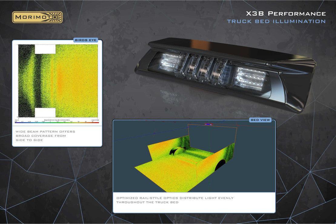 BED LIGHTS: Are usually an afterthought, but not with the Morimoto X3B LED brake light modules. Optically engineered rail-style optics have been purposefully designed to effectively illuminate your bed without dead spots. While the X3B looks cool, its also a major upgrade for enthusiasts who value utility, and actually use their trucks too.
