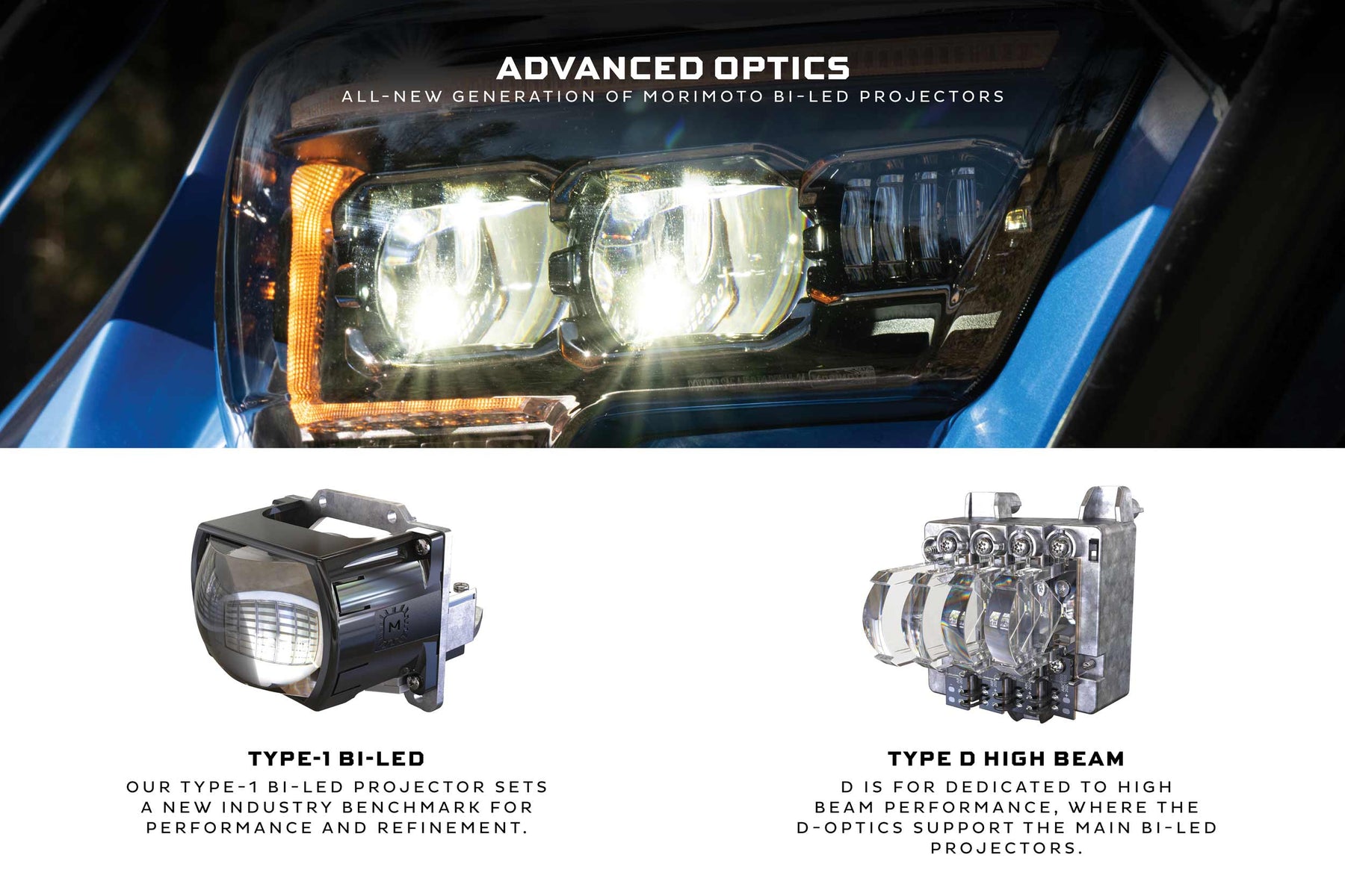 Maximum Performance: Thanks to an all-new generation of Morimoto Bi-LED projectors, the XB Evo headlights will meet and exceed the highest standards for headlight performance that are set by the Insurance Institute for Highway Safety... which is a tough mark even for most modern luxury automakers. Here, the Tacoma Evo headlight utilizes dual Bi-LED projectors to deliver unmatched light output, with an incredibly bright and wide low beam, and a high beam that destroys darkness. In high beam mode, dedicated D-Optics add even more intensity and coverage. All optics are powered by the latest OE-grade automotive LEDs from Nichia in Japan.
