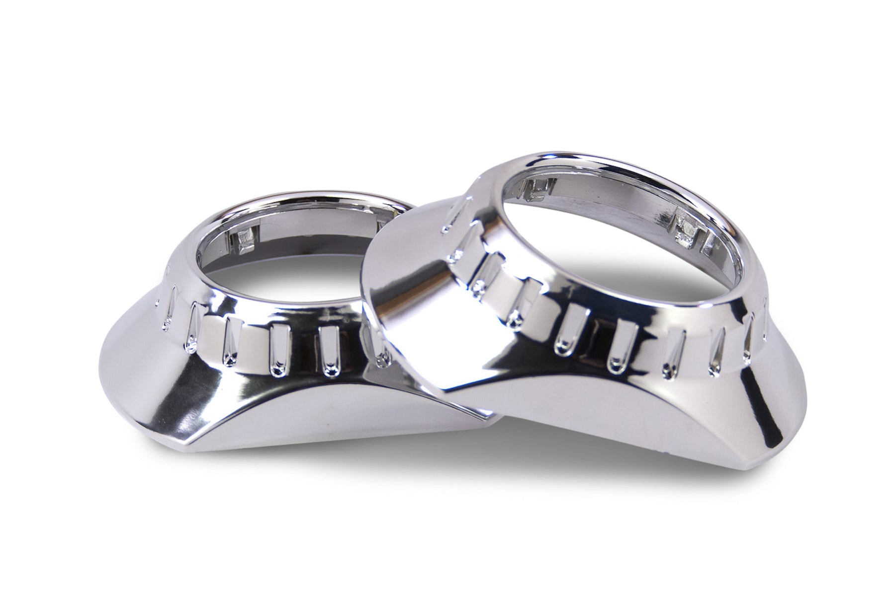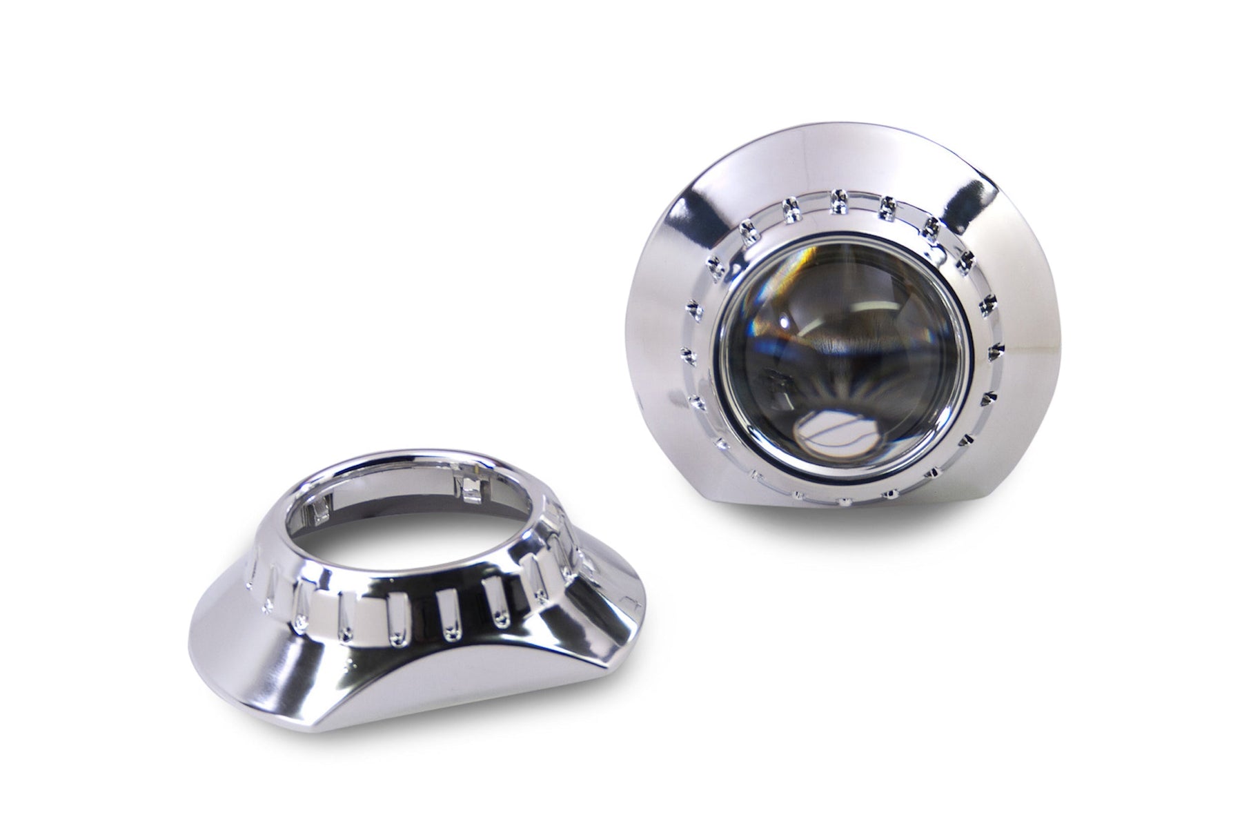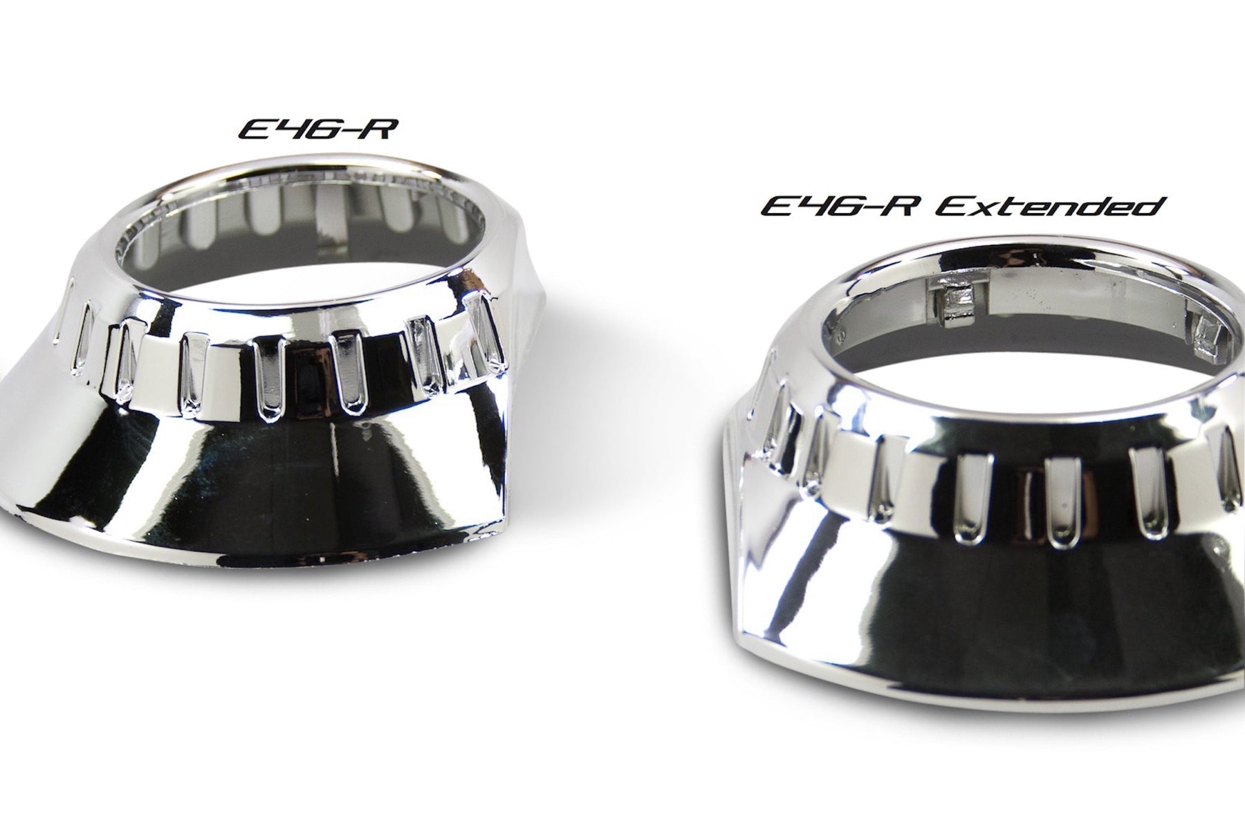 In Comparison: Don't make the mistake of thinking all shrouds are created equal. Even though less expensive alternatives may be available elsewhere: Morimoto shrouds are made from the highest quality plastic and have by far the most durable metalized chrome finishes. The cheap-o's out there are flimsy enough to deform from the heat just a 35W HID bulb, and their chrome finish easily flakes off.