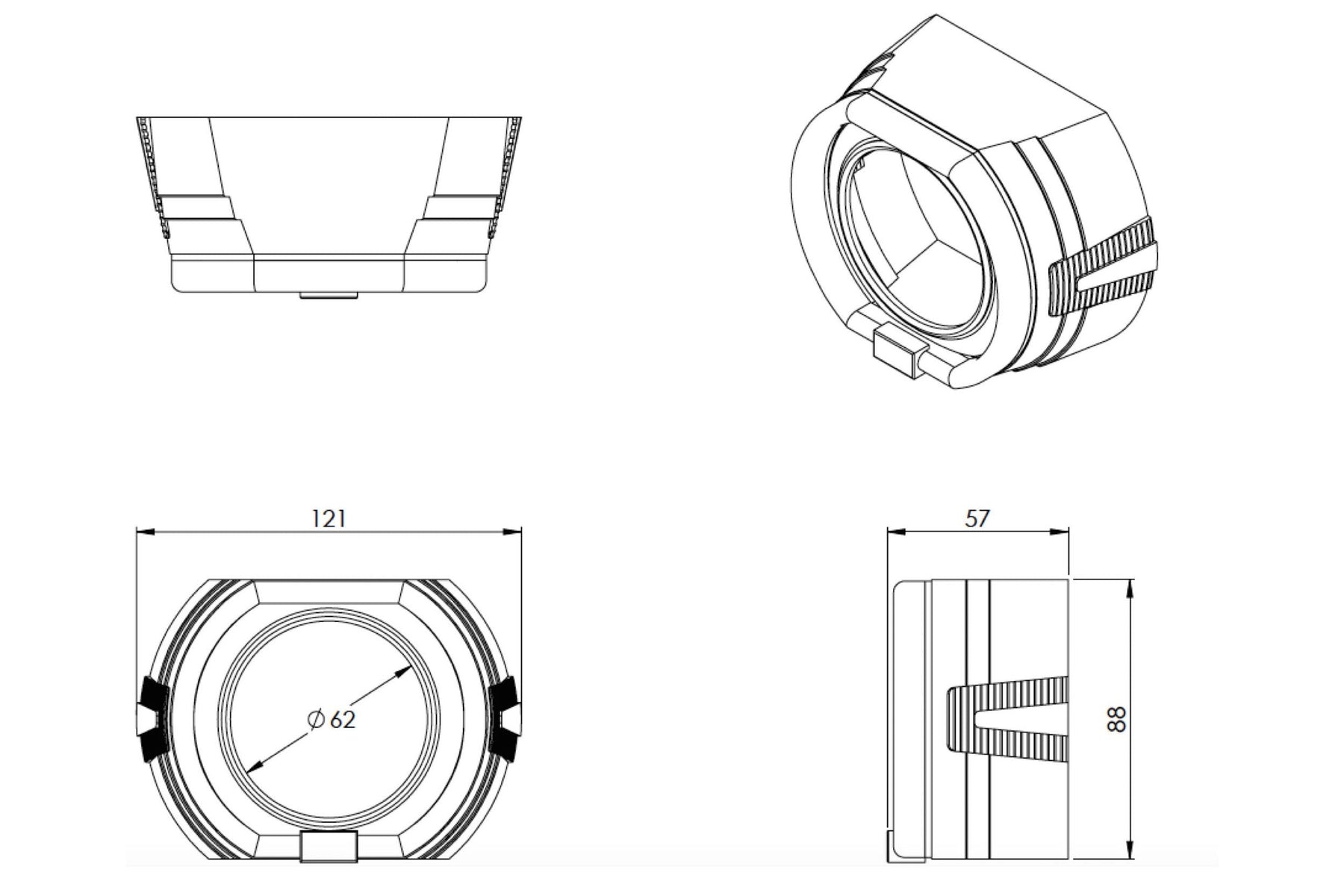 Trimming: Please note that trimming shrouds is a common task when retrofitting. Whether required to clear part of the projector, or fit within the geometry of your headlight housing; it's normal. Luckily, they're made of plastic - making that easily possible. We recommend a Dremel hand tool with EZ Lock cutting wheels to make the job easy.