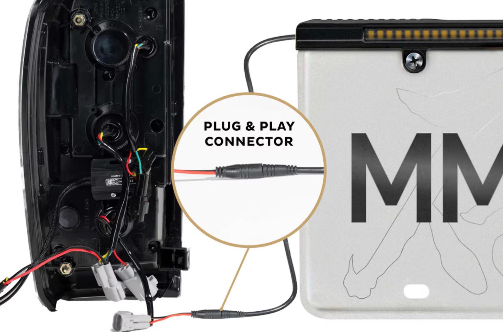 TURN SIGNAL: The Amber LED turn signal can be setup according to preference as a reverse sequential or a more conventional on/off setup. Deciding which path to take is easy, since its only a matter of changing a plug on the back of each tail light. No modifications required, everything will plug n play with the factory wiring without any concerns of hyper flashing.