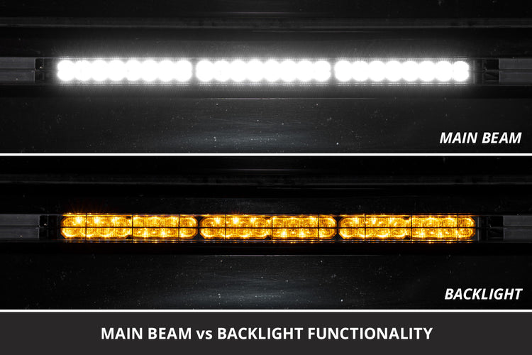Amber Backlight. All Stage Series LED Light Bars include an integrated amber backlight that fully illuminates the TIR optic, providing distinctive accent lighting and enhanced visibility when parked or stopped on the trail.