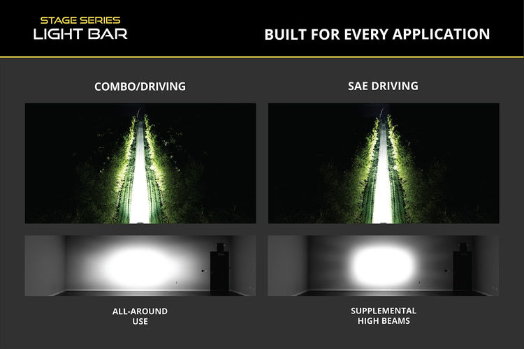 Designed for Performance. Each Stage Series Light Bar has been engineered from the ground up with the most modern optical, thermal, and circuit board technologies to provide more output than any other light bar on the market. Unlike reflectors, TIR optics capture and focus nearly all of the light output, shining it only where you need it, without glare or wasted light.