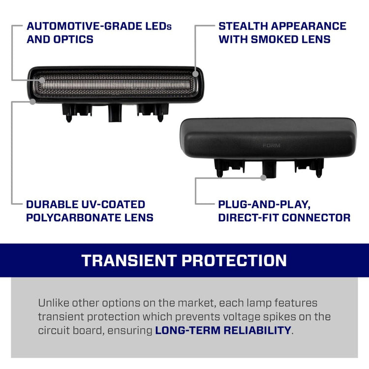 OEM-Grade Construction.  Form Lighting lamps are built with quality in mind, using OE-grade materials and design techniques. This includes durable UV-coated polycarbonate lenses, automotive-grade LED emitters, breather vents, and OEM plug-and-play connectors. They are assembled in an IATF 16949-certified facility, which is a quality management system designed for the automotive industry. While they may not be the cheapest option you’ll find, you can rest assured that these lights will provide durable and superior performance.
