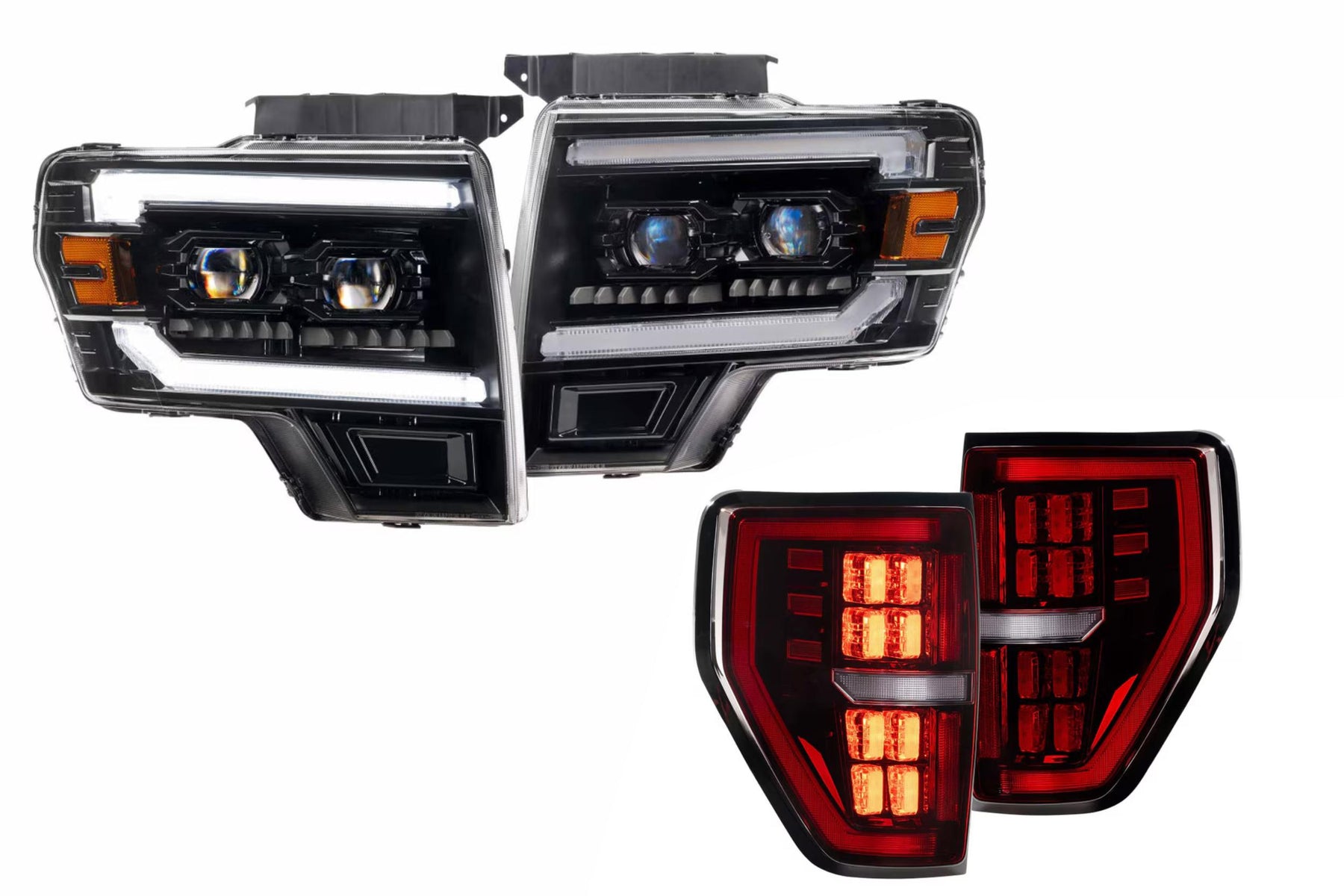 Headlights: Evolutionary: A simple design refresh would have been easy, but that’s not what this is all about. The all-new XB Evo Hybrid headlights are a showcase of everything Morimoto is made of at a price that everybody can afford. From concept to completion. Packed with features that demonstrate a true attention to detail including the latest in technology, compliance, quality, and styling, these headlights are designed for enthusiasts who are serious about all the above, even if it comes at a premium. Maximum Performance: Thanks to an all-new generation of Morimoto Bi-LED projectors, the XB Evo Hybrid headlights will meet & exceed the highest standards for headlight performance that are set by the Insurance Institute for Highway Safety... which is a tough mark even for most modern luxury automakers. Here, the F-150 Evo Hybrid headlight utilizes the same Bi-LED projectors found in the higher end XB Evo model to deliver unmatched light output, with an incredibly bright and wide low beam, and a high beam that destroys darkness. All optics are powered by the latest OE-grade automotive LEDs from Nichia in Japan. On Road: The Morimoto XB Evo Hybrid Headlights meet all standards with FVMSS108 regulations for on-road use in the USA. Their projector optics are so capable and efficient that their LEDs are only driven at about 50% of their full potential intensity to avoid exceeding limitations set by compliance. The vertical aim is fully adjustable within +/- 6 degrees for a perfect alignment on any F-150, even with a lift. The system was designed in California by Morimoto’s lead optical engineer, Yoshi Ishida, to deliver maximum visibility, comfort, and safety, and that it does. Off Road: Yes, you read that correctly. Out of the box, XB Evo and XB Evo Hybrid are only producing a fraction of their potential intensity for compliance reasons. Want more light for your off-road adventures? The optional Supercharged Drivers boost both low and high beam intensity by 30-50% -- all without sacrificing reliability or warranty. It also adds the welcome sequence to the DRL and projectors that doesn't normally appear on the Hybrid version of the headlight. While the Supercharged drivers easily enable the XB Evo to outshine every other headlight for the F-150 on the market, we must reiterate that they will result in non-compliant levels of peak beam intensity, and therefore should not be used on public roads. DRL Optics: The turn signals and daytime running lights illuminate glass-like 3D optics with special surface textures, which enables maximum intensity from all viewing angles. Easily out-shining low-tech DRL optics found in most every other aftermarket headlight. DRL and Turn Signals: The daytime running light illuminates in a crisp clear white color that perfectly matches the LED projectors. Thanks to their impressive optics, the amber turn signals are also incredibly bright, and operate in a solid flashing pattern with an elegant fade-off effect. Sequential turn signals and Amber DRL settings are not available for the Hybrid version of the headlights. OE Fit & Installation: The XB Evo Hybrid headlights are expertly crafted to match all OE specifications to ensure perfect fitment and hassle-free installation. They will bolt onto the original mounting points and line up to the surrounding sheet-metal without any massaging, and then plug into the factory wire harness and then work without errors on the dash, nor flickering, flashing, or radio interference. Thoughtfully engineered for a modification-free install. No factory warranties void. No headaches. Well-Built: This product is completely designed, engineered & tested in the USA by the Morimoto team to meet the high expectations of our customers. Nichia LEDs from Japan are used throughout. All wiring and connections are OE-grade. When it comes to UV protection, OE Toyota headlights are industry-best, which is why we've formulated a new hard coating that exceeds their 3,000-hour standard for resistance against cracking, fading, and yellowing lenses from UV exposure. The list goes on but as the saying goes: you get what you pay for. XB Evo Hybrid headlights aren't cheap, but they are built to a high standard and should easily last the life of your F-150! We’re proud to stand behind the product with an industry-leading five-year warranty. Tail Lights: Ford F-150: While every biz in the aftermarket has a catalog full of products for the 09-14 Ford F-150, somehow no brand has yet to deliver a worthy set of tail lights for this truck... until now. The Morimoto XB LED tail lights are the category killer that every F-150 owner has been waiting for! Reverse Lights: Are often over-looked, but not with the Morimoto XB tail lights for the F-150. While they come standard with powerful LED reverse lights, just wait, theres more! Morimoto's BLBB system allows you to plug n play with the optional LED Backup Boost Bar which mounts to the top of your license plate frame and provides an extra 2,700 lumens of controlled light output in reverse. Yeah, Morimoto customers like to see where they're going in reverse too! Style: Inspired by the design of the more modern OEM LED tail lights from later generation trucks, these look right at-home on the rear end of the 12th Gen. Two clusters of four 3D Optics are illuminated from the rear with integrated TIR optics, and serve as the brake light and turn signal. The parking light optic around the outer edge of the lights mirrors the OEM LED setup, and is equally impressive in the intensity department day or night. Pair that with the surrounding muscular trim, optional smoked or red outer lens, and we've easily got what is the best-looking set tail lights on the road for the 09-14 F-150s! Style and Safety: All Morimoto tail lights are designed to comply with all DOT, SAE regulations for rear-facing lamps. We pride ourselves on offering stylish, high-performance and safe products for serious enthusiasts, which is why all ne