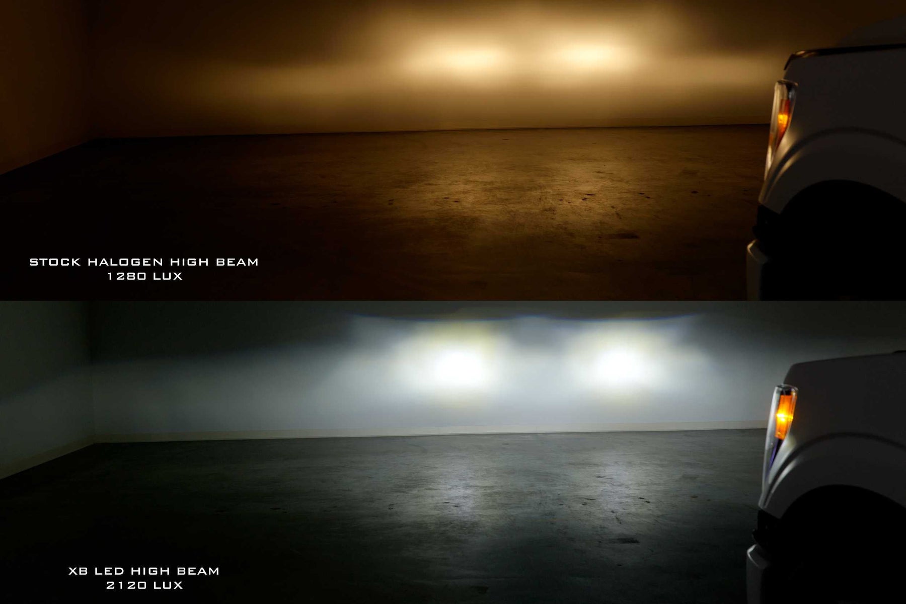 Unmatched Visibility: These use single Bi-LED projector with a unique over-sized optic that produces an impressive amount of light output. In addition, LED reflector-based optics above and below the projector assist in boosting overall beam coverage and intensity throughout. These things completely blow away the OEM halogen headlights, and even out-perform the OEM LED headlights in many ways too.