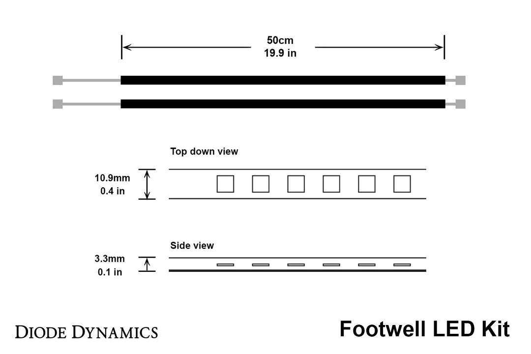 Custom Appearance. Add a custom look to your vehicle with our Single-Color Footwell LED Kit! Available in Red, Blue, and Cool White, these LED Strips can be installed on any vehicle!Â