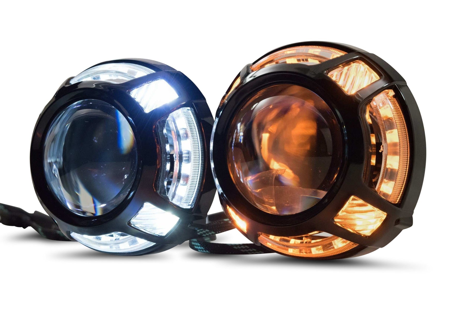 Panamera-LED: The original Panamera switchback shrouds were an instant success. Inspired by modern Porsche headlights, the 2.0 keeps the model current with the latest design language from Porsche - making them even edgier than before. While the aesthetic is different, the performance is unchanged. But make no mistake, with their Morimoto XSB powered Type II switchback drivers & LEDs, they illuminate the 4 corners with mad intensity. Undoubtedly the most baller status shrouds we've ever offered. With excellent coverage for most projectors too, they're also very functional.