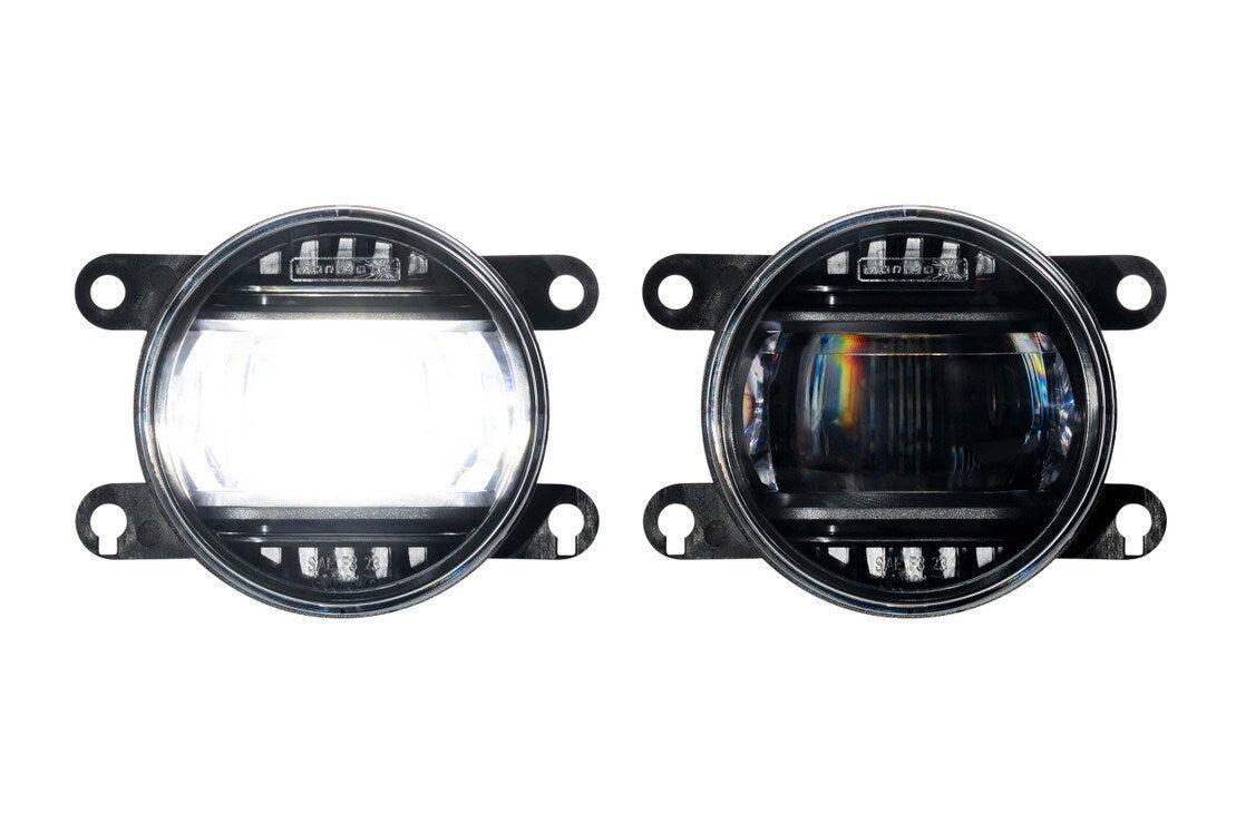 XB, Evo, and Evo+: While the standard XB LED fog is a massive upgrade over stock halogen fog lights, the new XB Evo models take performance to the next level. Their recipe delivers more of everything one would ask for in a good fog light and is available in two distinct versions: a dedicated, white-output model, and the XB Evo+ which can be switched on-the-fly between white and yellow. Unique to the XB Evo+ fog lights is the zero-compromise distribution of light within the beam regardless of which output color is selected... which cannot be said for other switchable fog lights on the market.